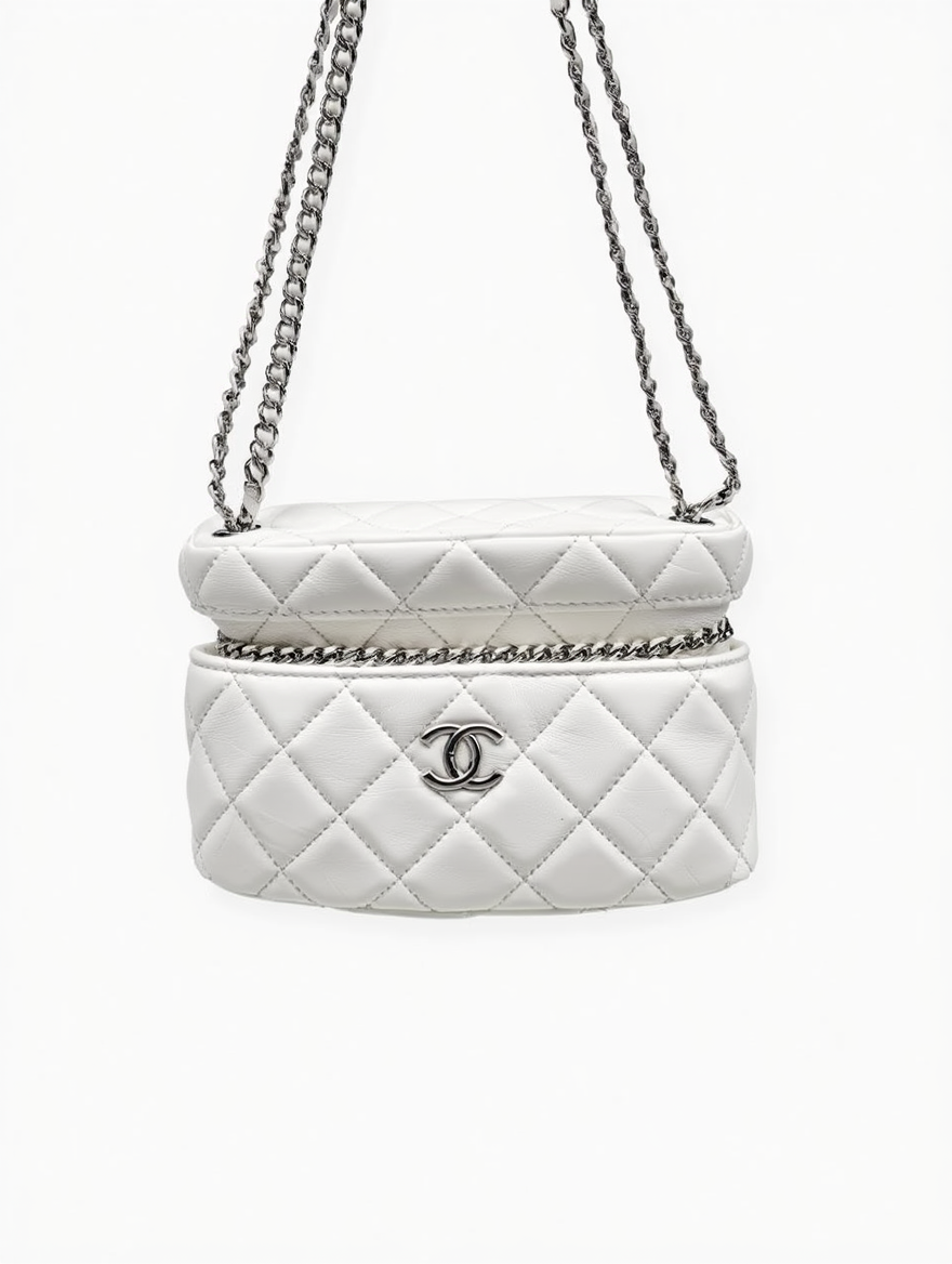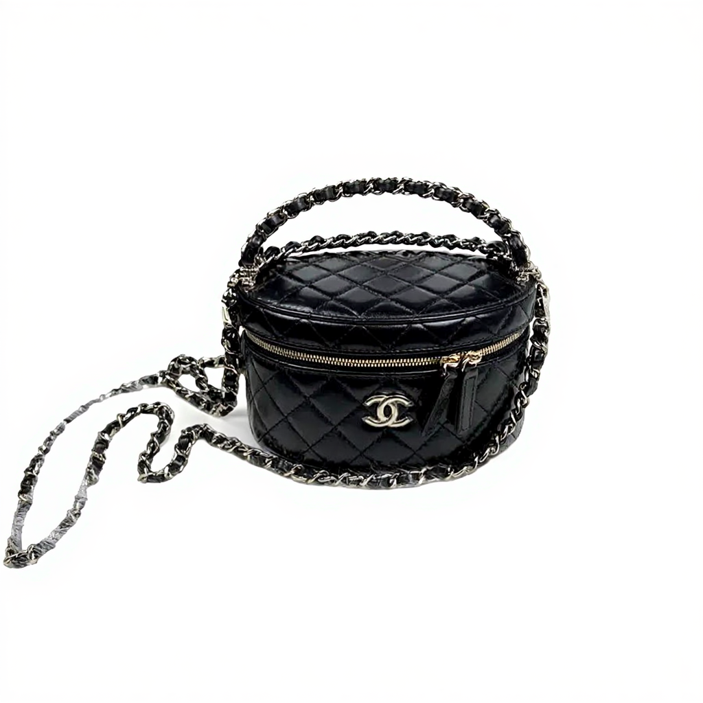 Features: • Premium black quilted leather • Gold-tone CC logo & hardware • Top zipper closure • Sturdy top handle + chain leather strap • Structured vanity shape with roomy interior • Perfect for day, night, and special occasions • Elegant, versatile, and instantly elevates any outfit