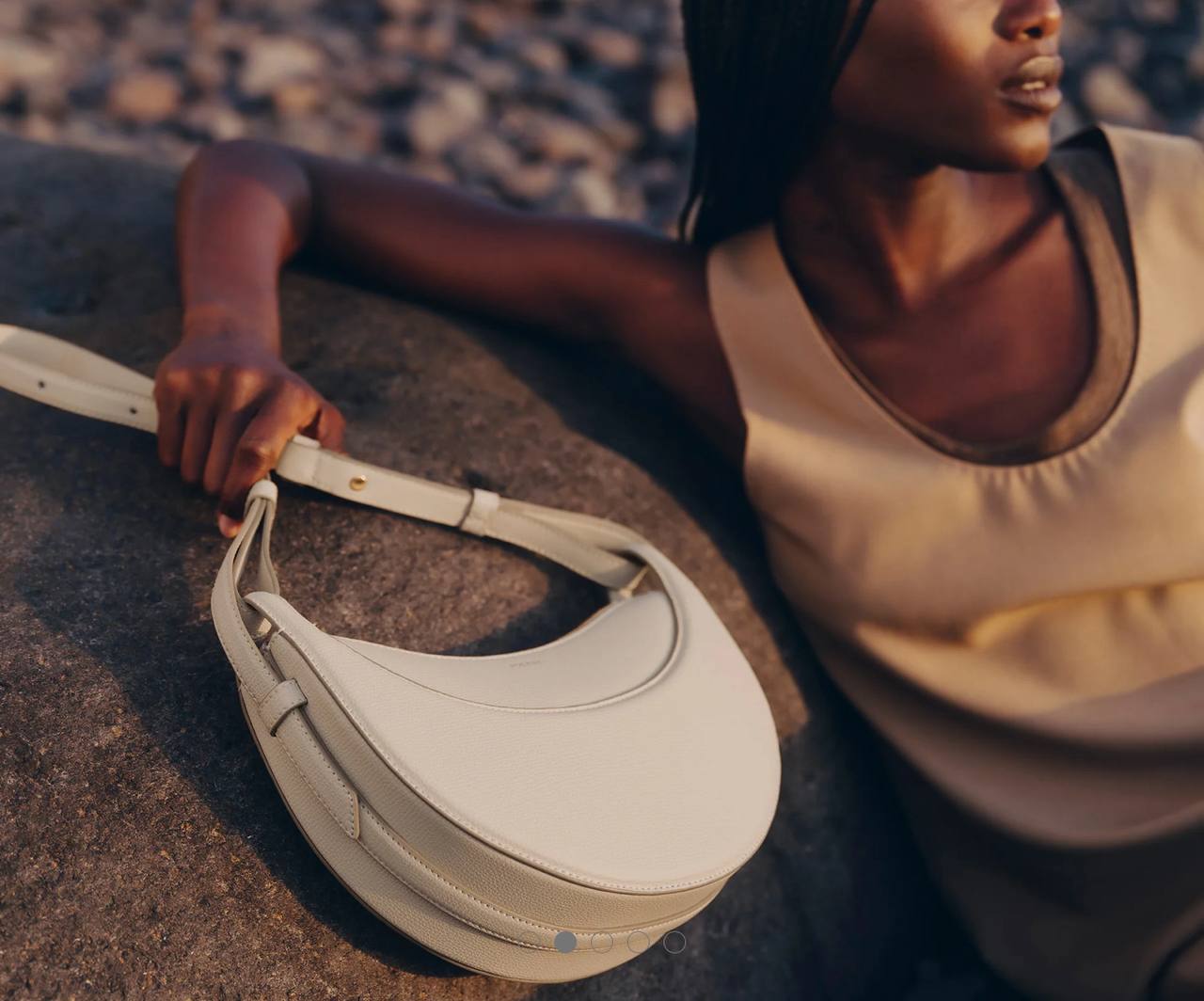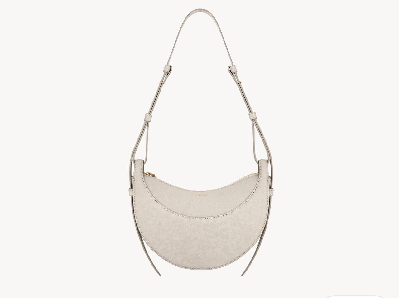 With its rounded shape, foam padding, and hand-sewn stitches, the “Numéro Dix” is an equestrian nod to saddlery. Its half-moon design plays on a juxtaposition of curves.