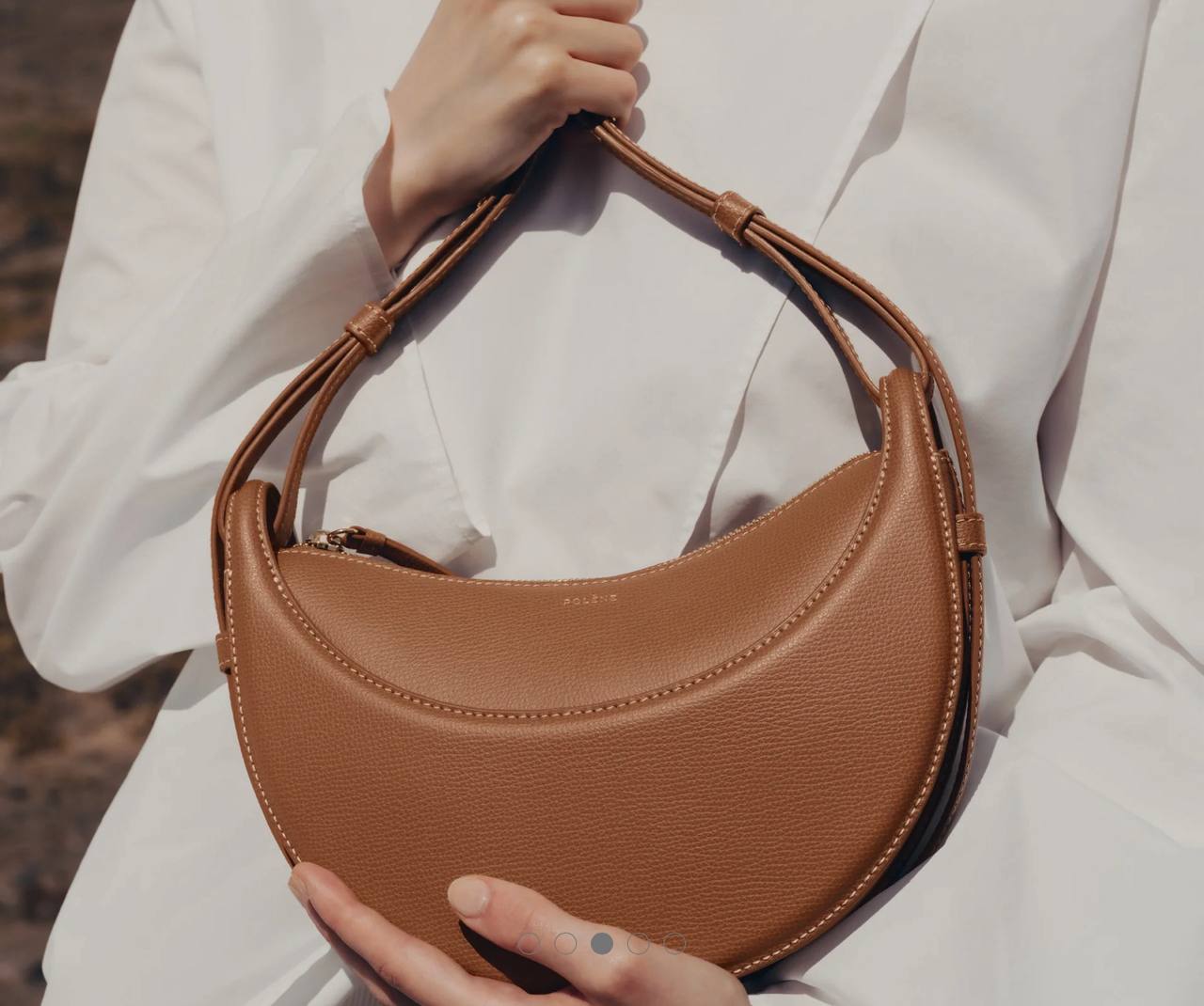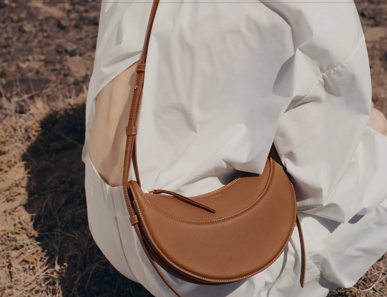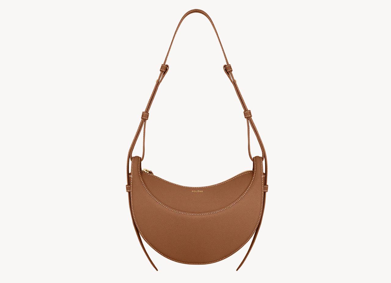With its rounded shape, foam padding, and hand-sewn stitches, the “Numéro Dix” is an equestrian nod to saddlery. Its half-moon design plays on a juxtaposition of curves.