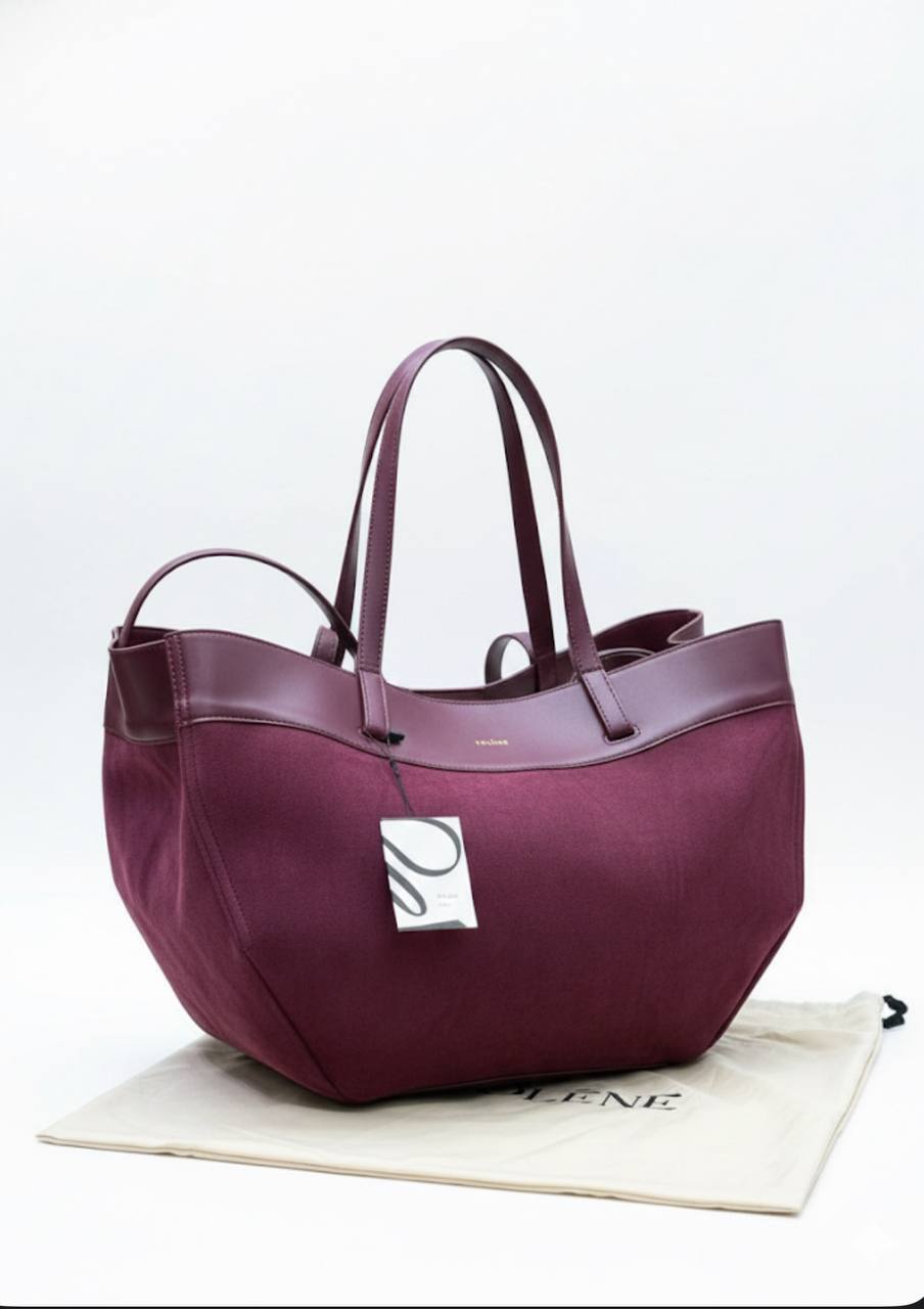 Features: • Polène-style sculptural shape • Premium canvas body with smooth leather top trim & handles • Structured yet soft silhouette • Spacious interior suitable for daily essentials • Double handles for comfortable shoulder or hand carry • Rich burgundy color for an elevated, timeless look • Comes with a branded dust bag Perfect for: everyday elegance, work, outings & travel.